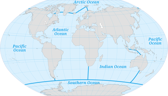 The Southern Ocean is the 'newest' named ocean. It is recognized by the U.S. Board on Geographic Names as the body of water extending from the coast of Antarctica to the line of latitude at 60 degrees South. The boundaries of this ocean were proposed to the International Hydrographic Organization (IHO) in 2000. However, not all countries agree on the proposed boundaries, so this has yet to be ratified by members of the IHO. The U.S. is a member of the IHO. [Source: NOAA]