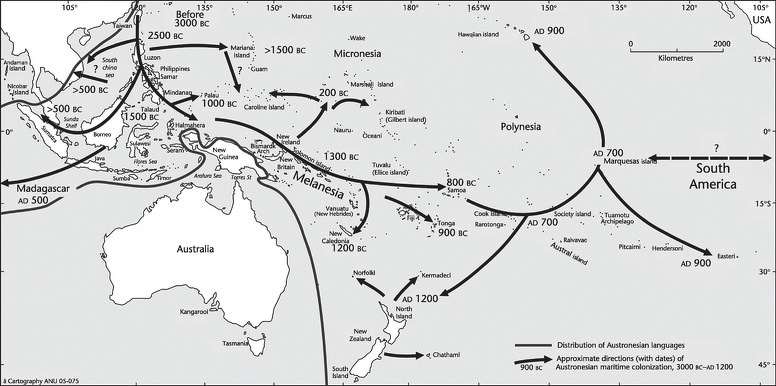 Dates for the dispersal of Austronesian people across Island Southeast Asia and the Pacific; from Bellwood P, Australian National University Researchgate