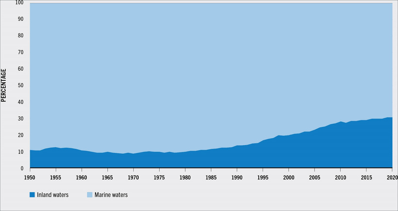 The fish market was valued at US$406 billion in 2021 and global fisheries and aquaculture production reached an all-time high of 214 million metric tons in 2020 — according to the UN State of World Fisheries and Aquaculture Report 2022. [Source: Martina Iginia, Earth.org. July 15 2022]
