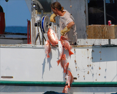 In 2020, commercial landings of red snapper totaled approximately 3.5 million kilograms (7.7 million pounds) and were valued at US$31.5 million, according to the NOAA Fisheries commercial fishing landings database. Commercial fishermen mainly use hook-and-line gear (handlines and electric reels) to harvest red snapper, and sometimes use longlines (in the Gulf of Mexico) and spears. [Source: NOAA]