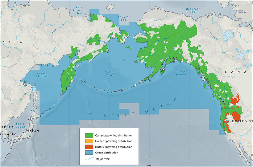 Image Sources: Wikimedia Commons, NOAA, range maps from the Wild Salmon Center