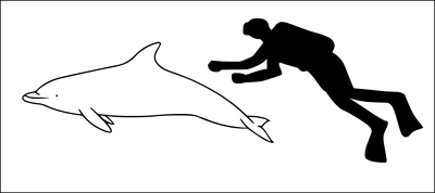 The beak of Atlantic spotted dolphins is long and narrow, a typical feature of all Stenella dolphins. Atlantic spotted dolphins are larger in size, but not length, than Pantropical spotted dolphins. Proportionately larger flippers, flukes and dorsal fins are also characteristic of Atlantic spotted dolphins. The skull of the Atlantic spotted dolphin varies in size with individuals and with geographical region. Skull size is generally correlated with body size. /=\