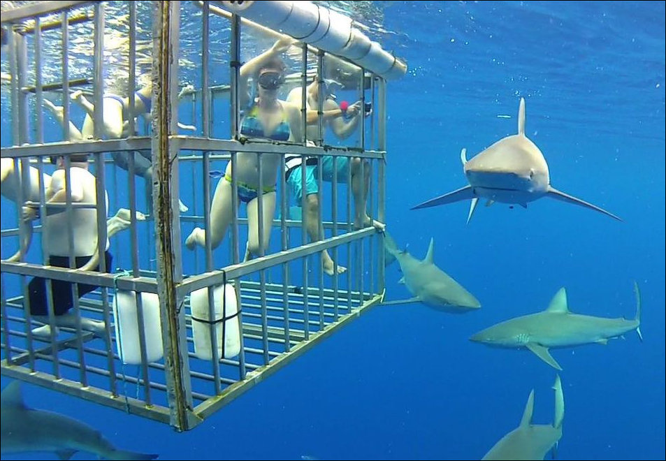 There are some ethical concerns with shark-cage diving though. According to USA TODAY: While shark-related activities such as cage diving can help break the stigma around great white sharks, there are some who are concerned about the ethics and impact on the sharks themselves. Some say the bait or targets used to lure sharks has changed sharks' behaviors, which can be dangerous for the shark and people. Many scientists oppose the practice, Marine biologist George Burgess told Smithsonian magazine, “Sharks are trainable animals. They learn to associate the humans and the sound of the boat engines with food, just like Pavlov’s dog and the bell, so what we really have then is an underwater circus.”