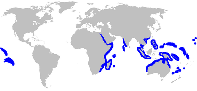 Grey reef shark are typically found at depths of zero to 280 meters (918.64 feet). They are widespread from the eastern Pacific Ocean (Costa Rica) through the western Pacific and Indian Oceans, and in the Red Sea. They are most commonly encountered off the islands of Tahiti, Micronesia, Fiji, Papua New Guinea, and Malaysia.[Source: Jessie Christel, Animal Diversity Web (ADW) /=]