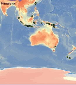 Terence E. Hays wrote in the “Encyclopedia of World Cultures”: ““During the later stages of this epoch, with one climax about 53,000 years ago and another about 20,000 years ago, sea levels in the southwestern Pacific dropped to such an extent (by about 120 to 140 meters from their present levels) and for such long periods that two massive land units were created called the 'Sunda (or Asian) Shelf' and the 'Sahul (or Australian) Shelf." The former connected Sumatra, Borneo, Java, and Bali to mainland Asia, and the latter joined Australia to New Guinea and many of its nearby islands. These dry-land connections facilitated the dispersal of Asian plants, animals, and peoples to Near Oceania, although Sunda and Sahul were themselves still separated by deep ocean troughs no narrower than the 90 kilometer-wide gap then existing between Timor and Australia. While sea levels were lowered in Remote Oceania as well, of course, its islands remained relatively isolated because of their still-vast distances from both Sunda and Sahul.