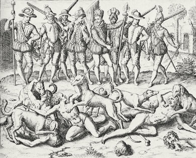 Describing the encounter, Martyr wrote: "Vasco discovered that the village of Quarequa was stained with the foulest vice. The king's brother and a number of other courtiers were dressed as women, and according to accounts of the neighbors shared the same passion. Vasco ordered forty of them to be torn to pieces like dogs. The Spaniards commonly used their in fighting against these people, and dogs threw themselves upon them as though they were wild boars or timid deer. The Spaniards found these animals as ready to share their dangers as did the people of Colophon or Bastabara, who trained cohorts of dogs for war; for the dogs were always in the lead and never shirked a fight."