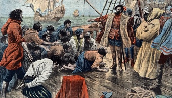 On present-day Mactan island off the island of Cebu a local king pretended to covert to Christianity to enlist Magellan's crew "to fight and burn the houses of Mactan to make the King of Mactan kiss the hands of the King of Cebu...because he did not send a bushel of rice and a goat as tribute."