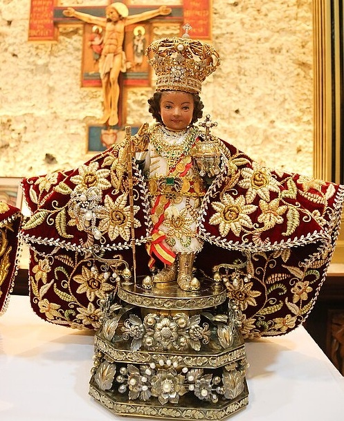 The image of the Santo Niño de Cebu is the oldest Christian image in the Philippines. The wooden image, made by Flemish artisans, was brought to the Philippines by Magellan in 1521, just like the Magellan cross. Magellan gave the Santo Niño (the Child Jesus) image to Queen Juana of Cebu as a baptismal gift. [Source: Angels in Stone by Pedro Galende, philippines.hvu.nl]