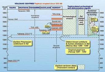 Holdaway and Nigel Prickett of the Auckland Museum have devoted much attention to answering two of New Zealand’s most sensitive archaeological questions. When did settlers ancestral to today's Māori arrive in New Zealand, and were they the first to introduce rats to its islands? Or were rats, which are not native to New Zealand, already there, left behind by earlier voyagers who are not yet visible in the archaeological record? [Source: Eric A. Powell, Archaeology magazine, Volume 56 Number 2, March/April 2003]