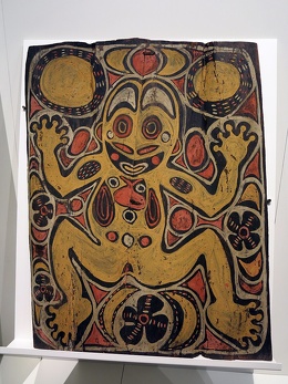 Eric Kjellgren wrote: In former times, virtually all Kambot painting was devoted to the embellishment of men's ceremonial houses, whose massive exterior gables and more intimately scaled interiors were adorned with paintings depicting ancestors and other supernatural beings. Kambot men's-house gables were decorated primarily with a single, enormous painting depicting a prominent ancestor, which appeared above a row of smaller paintings portraying various subjects; the interiors were decorated with numerous smaller paintings. [Source:Eric Kjellgren, “Oceania: Art of the Pacific Islands in The Metropolitan Museum of Art”, 2007]