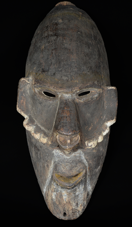 In historic times, as masks decayed and needed to be replaced, the members of the men's house commissioned an artist, called a duo wale nare sugo, to produce a new wale. As payment, the artist was provided with all his meals while he worked and with a final feast when the commission was complete. The finished masks were kept and reused for many years and were periodically repainted to refresh their colors for important ceremonies. Bearing the traces of many layers of paint, this work shows evidence of a long history of use. Its eyes and nose twisted slightly askew, the spirit gazes back at the viewer with an expression at once inquisitive and subtly menacing, perhaps as a reminder that the powers of the spirits are equivocal, able either to help or to harm.