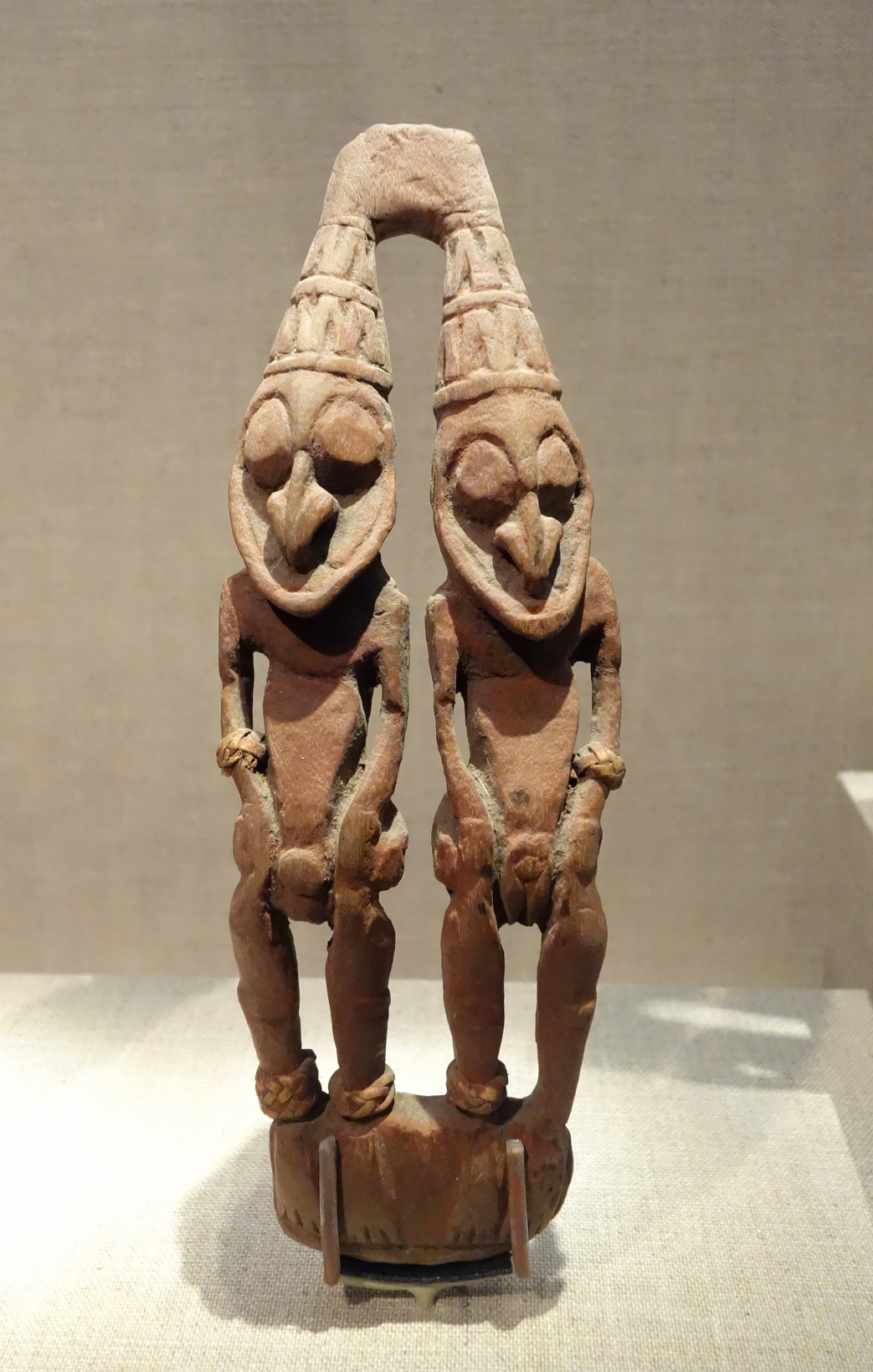 Male and female miniature figures, Lower Sepik or Coastal Region, 19th to early 20th century, wood, plaitwork, red ochre, De Young Museum