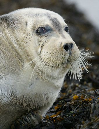 Bearded seals (Erignathus barbatus) are the largest northern seal species. They can reach 2.5 meters (8.2 feet) in length and weigh 340 kilograms (750 feet). Usually solitary they were hunted by the sealing industry. Inuit still hunt them for meat, leather and oil. Although most bearded seals do not live over 25 years in the wild, some have been recorded to live as long as 31 years. A critter cam was hooked up to one in 1997 by National Geographic researchers — one of the first uses of the devise on an aquatic animal.