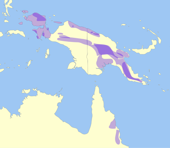 Six tree kangaroo species — the Ndomea, Goodfellow's, Wakera, Mbaiso, Seri's, and Vogelkop tree kangaroos — live in Indonesia, primarily in the lowland and mountainous rainforests of the Papua region (formerly Irian Jaya) and some islands off the coast of Papua. Ndomea tree kangaroo (Dendrolagus dorianus) and Mbaiso tree kangaroo (Dendrolagus mbaiso) are found in various parts of Papua. Goodfellow's tree kangaroo (Dendrolagus goodfellowi) and Seri's tree kangaroo (Dendrolagus stellarum) inhabits both Papua New Guinea and Indonesia. Wakera tree kangaroo (Dendrolagus inustus) is Found in northern and western New Guinea, including some offshore islands. Vogelkop tree kangaroo (Dendrolagus ursinus) is Endemic to the Vogelkop and potentially Fak-fak peninsulas in West Papua.