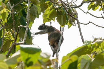Lumholtz’s tree-kangaroos rest in the canopy and sleep in a curled position supported by multiple branches. Feeding takes place in the canopy or middle zone, often at the forest edge, where vines are common. The tail is used for balance, hanging low under the center of gravity. Wild Lumholtz’s tree-kangaroos tend to use the ground primarily for escape purposes; they are capable of dropping considerably distances from the canopy to the ground without hurting themselves. When on the ground they only exhibit bipedal hopping. When in trees they are capable of various movements, including hopping, individual movement of paired limbs, and use of the arms to pull themselves up.