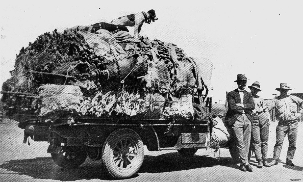 A truck load of 3600 koala skins, hunted during the last open hunting season in Queensland, 1927; the skins were obtained by a party of hunters in the Clermont area over 30 days, during the last open hunting season in Queensland, 1927