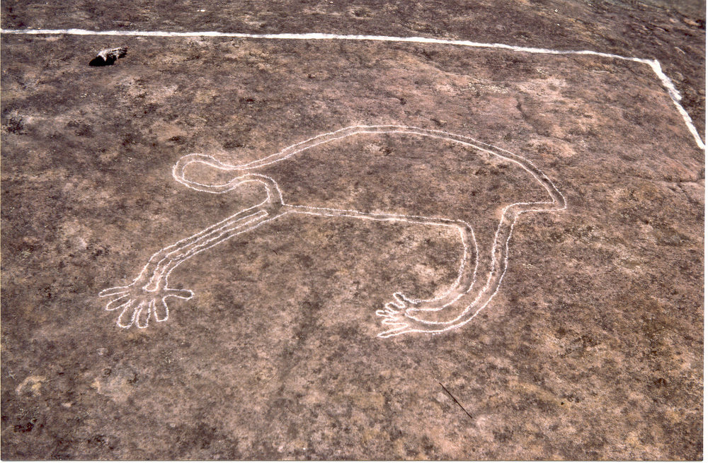 Aboriginal rock carving of a koala at Blackfellow's Head, Westleigh, New South Wales; a rock carving of a noose which was used by Aboriginals to get koalas out of the trees is located nearby; The area where the photo was taken has now been subdivided for housing, from Horny Shire Recollects hornsbyshire,recollect