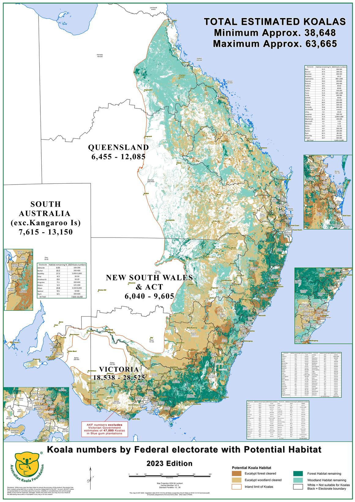 Breakdown of koala populations by state: