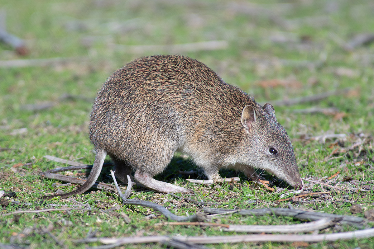 Southern brown bandicoots have very short, coarse fur that can include a mixture of colors ranging from black and grey to brown and golden yellow. Unlike many other bandicoots, they have very small ears that are rounded at the top and face outwards. The snout of southern brown bandicoots is much smaller than that of long-nosed bandicoot (Perameles nasuta). The lifespan of southern brown bandicoot in the wild is two to four years. They typically live up to 6.5 years in captivity.