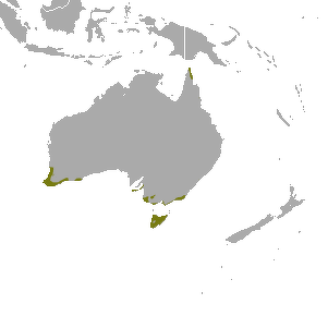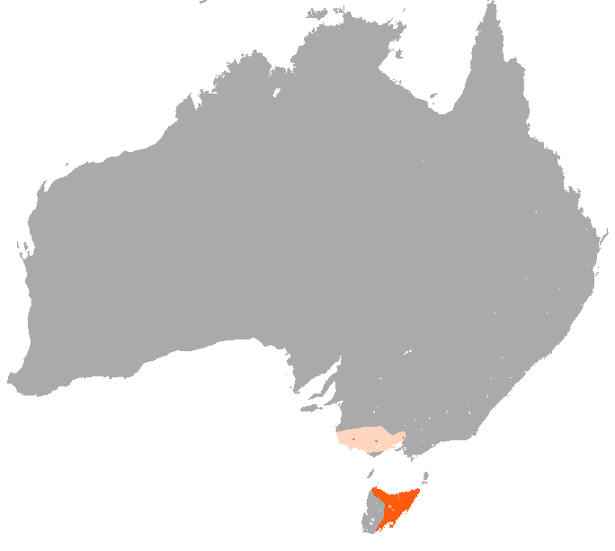 Southern brown bandicoots are found sporadically throughout the southernmost coastal regions of Australia — on the southern tip of Western Australia, in the coastal region of Victoria to New South Wales, a small part of the northernmost coastal Queensland, and throughout Tasmania. Southern brown bandicoots are associated most with coastal areas but are found in other habitats. They prefer areas with dense, swamp-like vegetation and brush up to one meter tall near bodies of water such as lakes, streams, or the ocean. They also inhabit inland areas such as forests and scrubland with dense ground vegetation, which provided them with protection and has lots of insects to eat. [Source: Kasey Blevins, Animal Diversity Web (ADW) |=|]