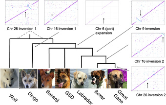 In a study published in the journal Science Advances in April 2022, researchers worked out the genome of a pure desert dingo named Sandy and compared it the genomes of five domestic dog breeds and found her DNA to be distinct, shaped by Australia’s environment and intermediary between wolves and domestic dog breeds. Donna Lu wrote in The Guardian: “The researchers compared Sandy’s genome to that of five domestic dog breeds — a basenji, a boxer, a labrador retriever, a German shepherd and a great dane — as well as a Greenland wolf. Using five types of DNA sequencing technology, as well as epigenetic analysis, the researchers found distinctions between the dingo genome and that of domestic dogs. One was a difference in the number of copies of a gene coding for amylase, an enzyme which aids in digesting starchy food. Dingoes, like wolves, only have one copy of the amylase gene. “Breed dogs, which only emerged in the last 200 years, have between two and 20 copies of this gene,” said Matt Field, an associate professor at James Cook University and the study’s first author. “That’s one of the telltale signs of domestication and [in dingoes] it’s not there.” [Source: Donna Lu, The Guardian, April 23, 2022]