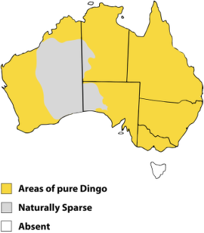 Dingoes are highly adaptable animal, after they were introduced to Australia they spread to all areas of Australia except Tasmania. Their habitat was vast and expansive, including alpine, woodland, grassland, coastal, desert and tropical regions of Australia. Since the arrival of Europeans and the spread of agriculture, there has been an aggressive and consistent push to get rid of dingoes in from many parts of Australia. Dingoes are now absent in areas of New South Wales, Queensland, Victoria, the lower third of South Australia and the southern part of Western Australia. The introduction of domestic dogs has led to a further decline of dingoes in Australia. Feral dogs and dingo-hybrids now inhabit what was once traditional dingo territory. [Source: Dingo Den]