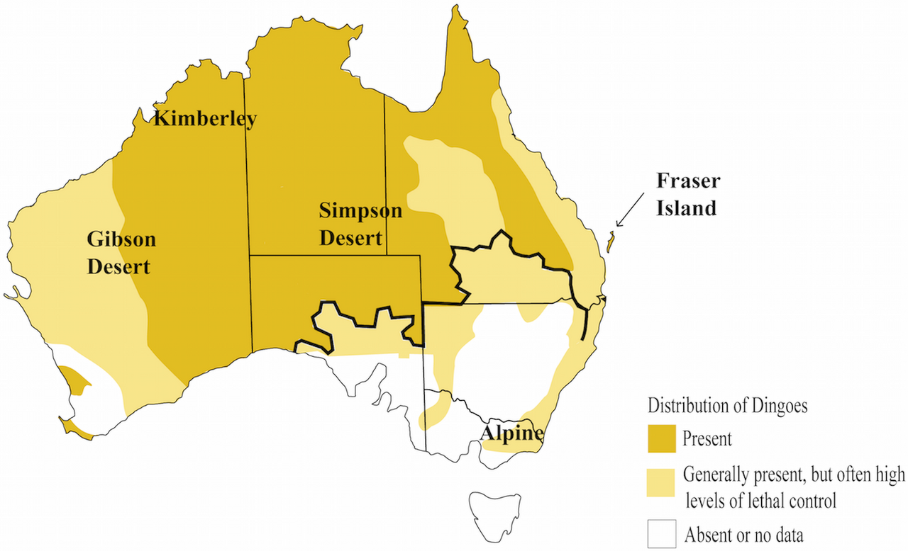 Dingo range before European settlement