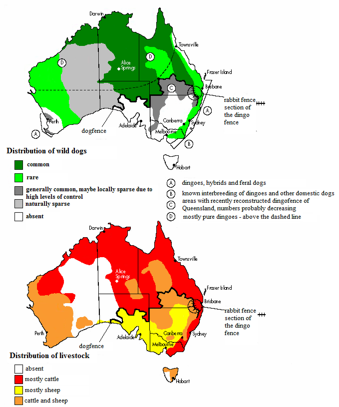 Despite efforts to control dingoes, they cause millions of dollars in damages to sheep ranchers every year. Droughts are particularly devastating because they kill sheep outright and wipe out the rabbits that dingoes outside the fence feed on, forcing them to migrate in large numbers in search of new sources of food.