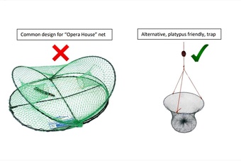 The main threats to platypuses are loss and degradation of their aquatic habitat by dams, pollution, urban expansion, and urban runoff. Droughts and the demands for water for human use are also considered threats. Some platypuses drown in nets of inland fisheries. The use of "opera house traps" by recreational fishers for catching crawfish is banned in South Australia, Tasmania and Victoria, and restricted in NSW and Queensland, due to the traps drowning non-targeted species including platypuses.