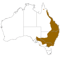 Bell's phase lace monitors have a base color of yellow-brown or yellow with fine black mottling and broad, black or dark brown bands from the shoulders to the tail. The top of the head is black. This form is typically found in mainly southeast Australia west of the Great Dividing Range from Woodgate, Eidsvold, and Mitchell in Queensland to Bourke, Macksville and Port Macquarie in New South Wales. It has also been reported from Healesville, Rushworth, and Murchison in Victoria and the Flinders Ranges in South Australia.