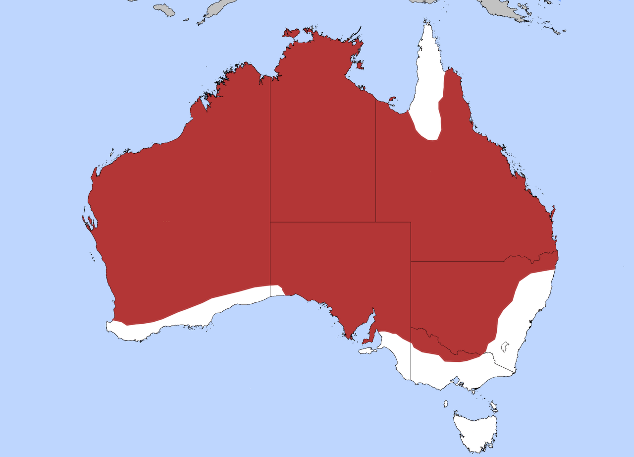 Perentie are found in the arid desert areas of Western Australia, South Australia, the Northern Territory, and Queensland. Their habitats consist of rocky outcroppings and gorges, with hard-packed soil and loose stones. Among many Aboriginal cultures, these goannas have totemic significance and are dreaming, as well as being a favorite food for desert Aboriginal tribes and as bush tucker for Europeans. Perentie fat was used for medicinal and ceremonial purposes.