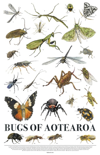 New Zealand batflies are unique wingless flies that lives in the roosts of the endemic short-tailed bat, feeding on bat guano for survival. Most caddisflies live in freshwater, New Zealand is home to the world's only marine caddisflies, which inhabit coastal rock pools. Pūriri moths are large, beautiful moths found in New Zealand.