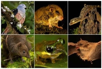 New species from New Guinea: (clockwise, from top left) The Imperial pigeon, tree mouse, gecko, blossom bat, long-nose tree frog and dwarf walla: