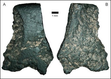 “The fact that the discovery is just a fragment does not matter, according to Peter Hiscock from the University of Sydney, who made the recent discovery. “The great thing about it is it’s really distinctive – it has both polished surfaces coming together on the chip. While you don’t have the axe, you actually have a really good record of what the contact edge looks like.” Although there is no handle, Hiscock says it is not a simple “hand axe” – a sharp tool held directly in the hand – because it has been polished and made of a heavy material, which would not help much for a tool intended to be used by a hand. |=|