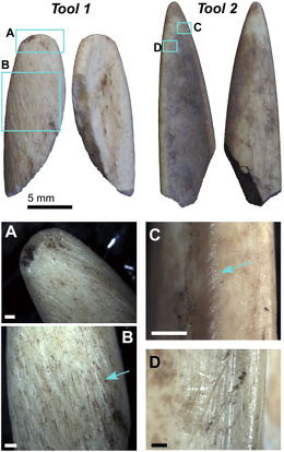 Amalyah Hart wrote in Cosmos: The secrets of the Kimberley bone tools’ use are inscribed onto them in patterns of wear and tear. By examining marks and breakages, the team inferred they were used for a range of activities, including the manufacture of plant fibre items, the processing of spinifex resin, and fish or bird hunting. “They were used for activities which typically do not survive archaeologically,” says Dr Langley. “One indicates plant or skin working (making baskets or working skins) while another appears to have been used in digging up or working resin. Resin was used to glue together tool parts and to make hand holds for tools.”