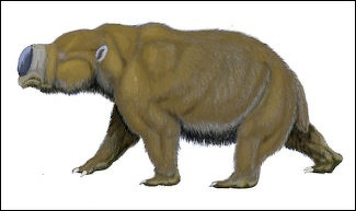 Prehistoric animals found as recently as 50,000 years ago on the Australian continent included massive carnivorous ghost bats, platypus with large canine teeth, rabbit-size creatures with huge projecting incisors, and nine foot birds that weighed half a ton. Large animals included the rhino-size diprotodon, a wombat-like marsupial plant eater that somewhat resembled a buffalo; giant kangaroo rats, weighing 90 pounds; a Volkswagen-size tortoise; eight-meter-long snakes that were one meter in diameter; and the Genyornis, an ostrich-size flightless bird.