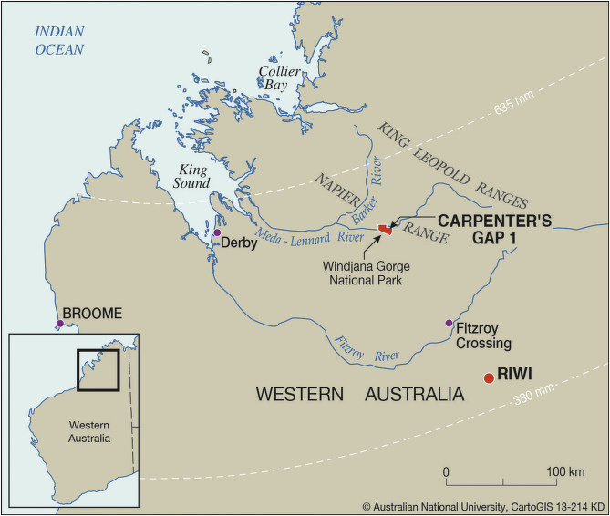 In 2021, Scientists announced that they had found kangaroo bone tools in layers dated to between 35,000 and 46,000 years ago in Riwi Cave, about 90 kilometres south-east of Fitzroy Crossing in the Kimberley region of Western Australia. They are among the oldest tools ever found in Australia. A bone tool found at Carpenter’s Gap 1 (also in the Kimberley) has also been dated to under 46,000 years old. [Source: Amalyah Hart, Cosmos, April 7, 2021]