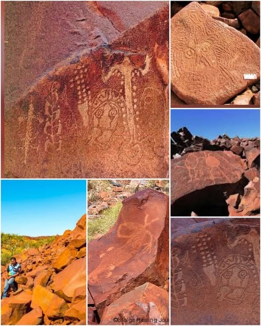 The Marra Wonga rock shelter in central Queenslandsite contains 15,000 petroglyphs created over thousands of years. Researchers learned that one of the main scenes, which includes starlike designs, snake figures, and human feet, tells the Aboriginal Dreaming story of the Seven Sisters. According to the tale, an Ancestral Being known as Wattanuri pursued the sisters across the Australian landscape, and their altercations led to the creation of many prominent features existing today.[Source: Archaeology magazine, January 2023]