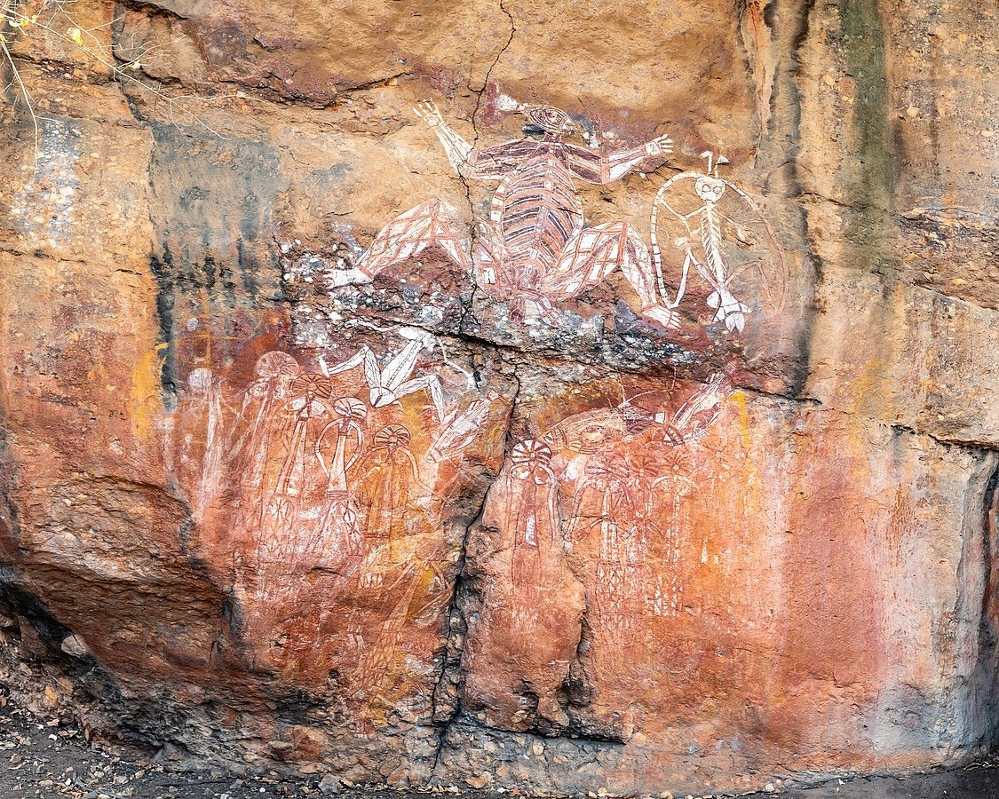 For tens of thousands of years, Aboriginal peoples have used art to record and share their stories of creation, culture, and ceremony. Across the north of the Northern Territory, ocher paintings, rock carvings, weaving, wood sculptures, screen-printed textiles, bark paintings, and decorated ceremonial objects remain central forms of expression, showcased today in art centres, galleries, and national parks.