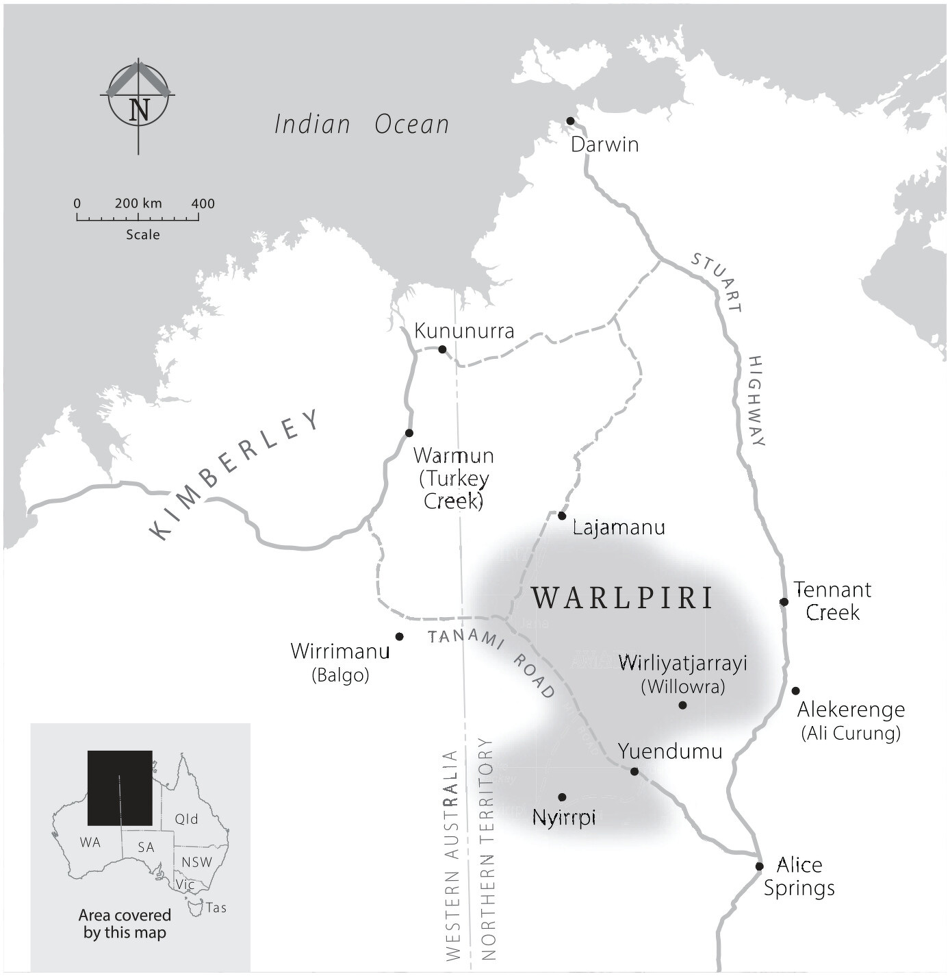 Warlpiri country lies in central Australia, with its center about 180 kilometers (115 miles) northwest of Alice Springs. Traditionally the Warlpiri-speaking people occupied the Tanami Desert in a territory estimated to cover 140,000 square kilometers (53,000 square miles). Today many Warlpiri people live in Alice Springs, Tennant Creek, Katherine, and the smaller towns of Central Australia. Their largest communities are at Lajamanu, Nyirripi, Yuendumu, Alekarenge and Wirlyajarrayi/Willowra (an Aboriginally-owned cattle station). Others can be found scattered across the top of northern Australia and the Kimberly region.