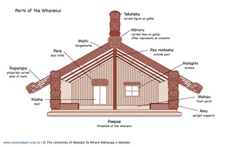 Close relationships between the design of houses and canoes are found throughout Polynesia.. In New Zealand one can see similarities in the construction techniques too. However, it is clear that a consideration of the local physical conditions radically influenced building design, and to some extent cultural practices within buildings.