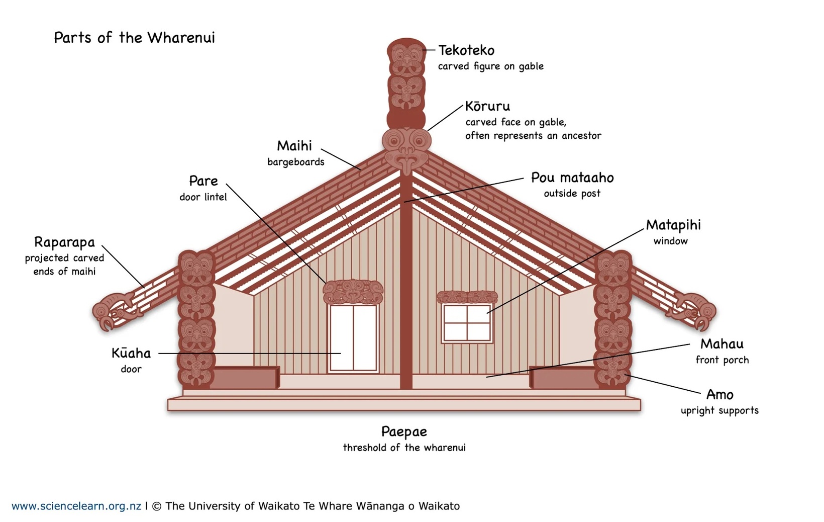 It is plausible that the influence of climate on architectural form—creating interiors that were warm yet smoke-filled—also affected spatial use, with high-status occupants choosing to sit or sleep in the least stifling areas. Moreover, the traditional tapu–to–noa transition that structured exterior spaces may have contributed to keeping the ventilation opening (and its associated high-status area) at the front of the building, discouraging the addition of further openings elsewhere. In this way, both environmental conditions and cultural values played integral roles in shaping the remarkably consistent form of traditional Māori houses across New Zealand. While regional variation did exist in the orientation of houses relative to the marae ātea and the positioning of the roro, these differences did not fundamentally alter the hierarchy of spaces or the cultural relationships between them.
