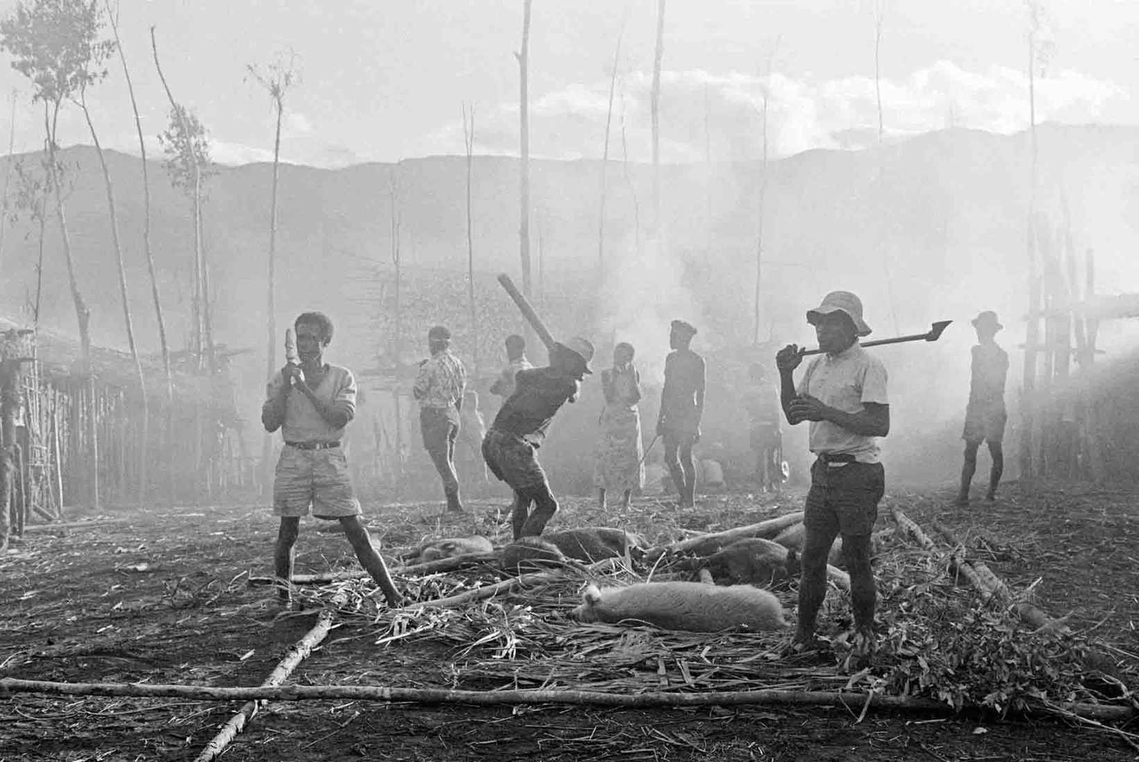 The Tauade recognize many malevolent spirits inhabiting streams, rocks, and trees. Some individuals use magical substances and spells, but magic and sorcery play a minor role in daily life. Tauade ceremonies revolve around pig killings, the distribution of pork and garden produce, speeches, and dancing. The largest events are held to honor the dead and are organized by big-men, who invite neighboring—sometimes rival—tribes. These occasions are highly competitive, as hosts seek to outdo guests through displays of generosity, oratory, and endurance in all-night dances. The events culminate in the slaughter of many pigs, with grand dance villages built specially for the occasion.