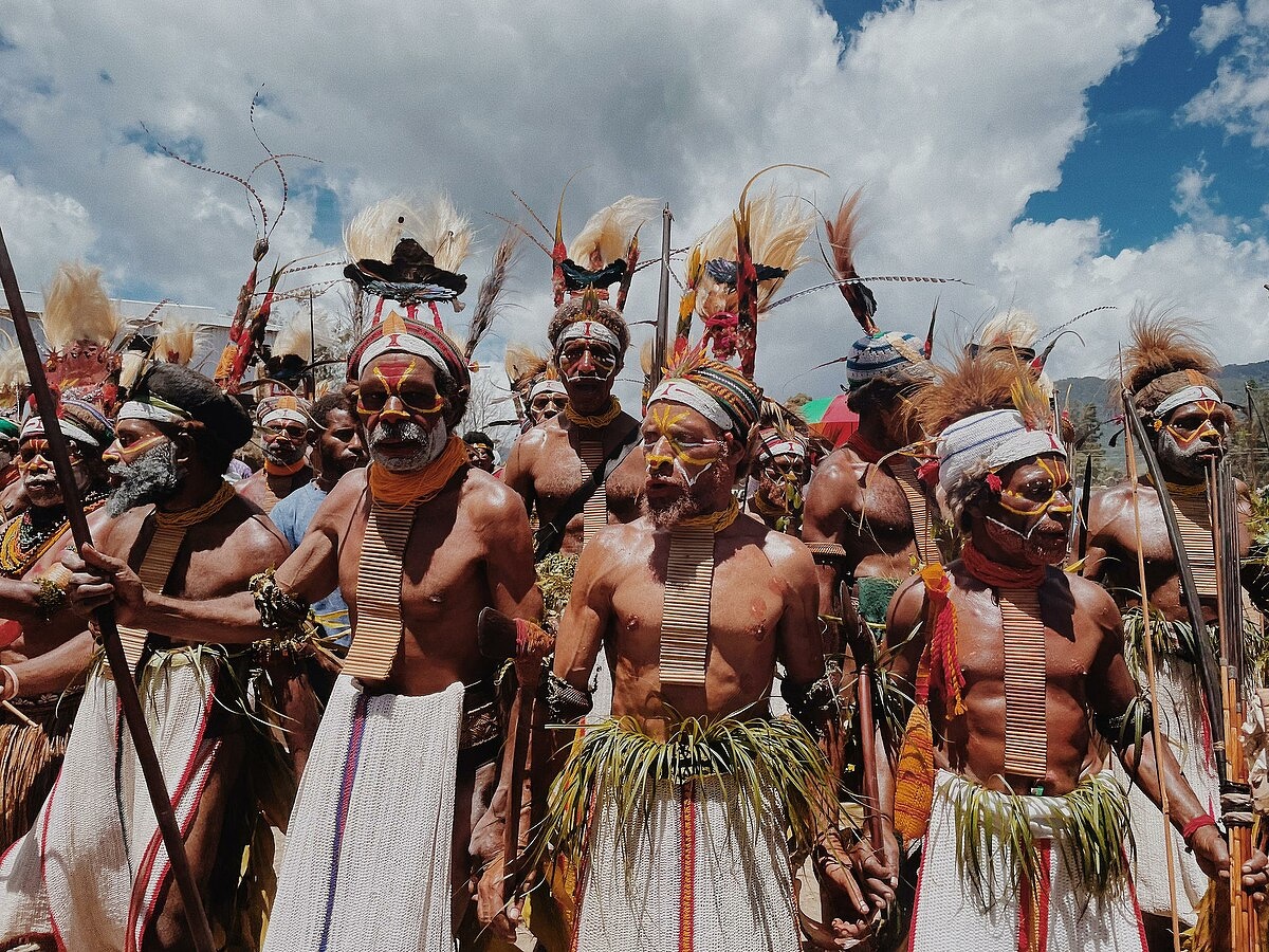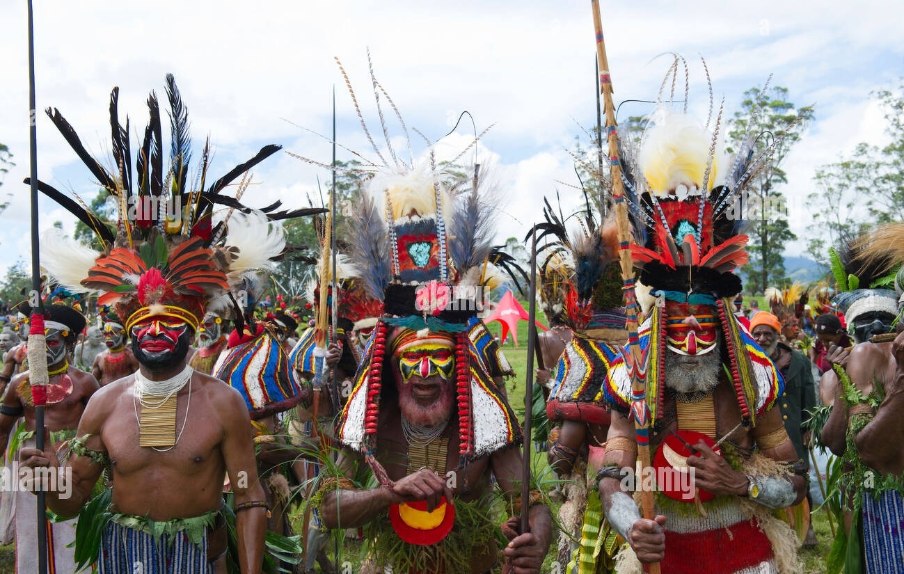 The Southern Highlands of Papua New Guinea is home to numerous ethnic groups — over eight major groups and 18 to 24 distinct tribes — including the Huli, famous for their elaborate wigs adorned with bird feathers, and the Mendi, Wola, Wiru, and Duna people. The varied and rugged geography of the Southern Highlands Province has historically isolated many communities, contributing to the province's significant ethnic and linguistic diversity, with some tribes speaking languages that are distinct from their neighbors just one valley away. [Source: Wikipedia, Google AI; “Encyclopedia of World Cultures, Volume 2: Oceania,” edited by Terence E. Hays, 1996]
