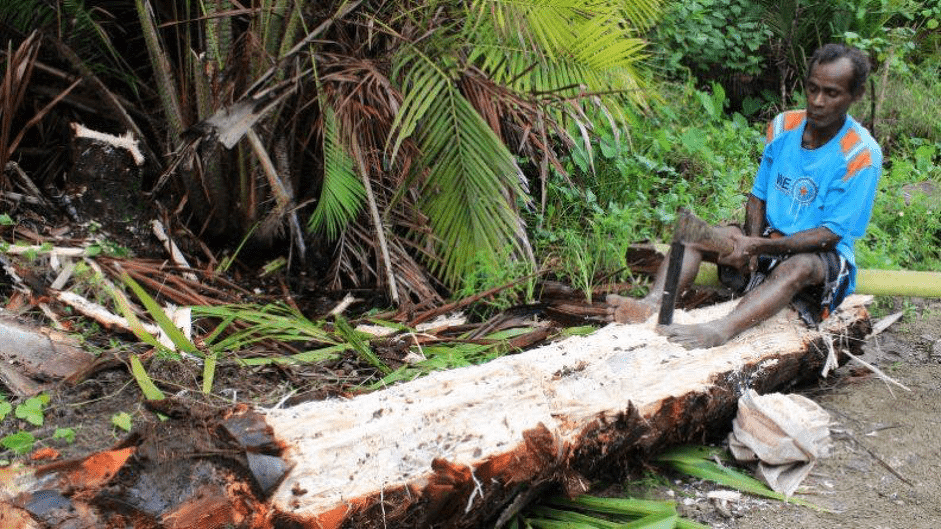 In the southern regions, two main types of gardens were maintained: large banana gardens, sometimes covering up to two hectares, and smaller mixed gardens, which were fenced to keep pigs out. Banana gardens required minimal upkeep beyond felling trees and planting suckers around the fallen trunks, while mixed gardens demanded considerable labor for fencing, soil preparation, weeding, and general maintenance. Productive for about two years, gardens were then left fallow for fifteen years or more to restore fertility. Sago was abundant in the south, where it was managed through selective weeding and cutting to increase yield. In the north, however, sago was less common, and people relied more heavily on the monocropping of taro as a staple.