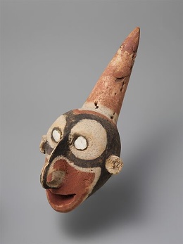 Ceremonies and Art: The Kiwai observe many rituals—from pre-battle ceremonies to initiations that instill fearlessness and strength. 1) The Hóriómu, held annually at the start of the dry season, honors the dead. 2) The Mogúru, their most secret ceremony, provides sexual instruction for adolescents and involves preparing a potent magical mixture. 3) The Mimía, or fire ceremony, marks male initiation through symbolic burning, beating, and the application of strengthening substances. Kiwai art is highly representational, often carving human figures even on tools. They produce drums, rattles, whistles, panpipes, flutes, shell trumpets, Jew’s harps, and bullroarers, and craft ceremonial masks from wood and turtle shell.