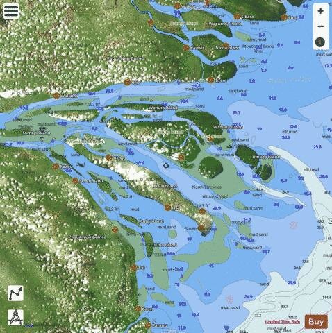 Nautical chart of the Fly River Delta GPS Nautical Charts