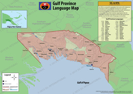Language: Orokolo belongs to the Eleman Language Family, a set of roughly five closely related, mutually intelligible non-Austronesian languages usually grouped within the Purari-Eleman stock. The family includes about eight dialects. As with cultural divisions, the main linguistic divide is between the Eastern and Western Eleman groups, which are separated by Raepa Tati—a more distantly related language spoken near the provincial capital at Kerema. Toaripi, or East Elema, is a Trans–New Guinea language.