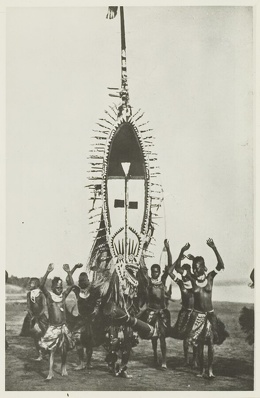 Death and Afterlife: In earlier times, mourners marked grief by covering themselves with mud and observing food taboos. The dead were wrapped in mats and left to decompose in their houses—later abandoned—while the bones were kept as relics or charms. Under missionary influence, burial became more common. A funeral feast gathered the entire tribe: the spirit of the deceased was believed to consume the essence of the food, leaving its physical form to be shared among mourners. The feast lifted mourning taboos, though the spirit was still thought to linger nearby and might return as a troublesome ghost.