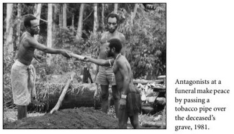 Gebusi social and political life is highly decentralized. There are no formal leaders—no big-men, headmen, senior elders, or war chiefs—and adult men tend to be egalitarian, uncompetitive, and self-effacing. Collective decisions arise through consensus. Despite the range of clan affiliations among co-resident men, the settlement functions as the primary political unit for hosting feasts and engaging in conflict. Full adult male status is achieved through a single-stage initiation and subsequent marriage. Little structural inequality exists between wife givers and wife takers; affines exchange food evenly regardless of the balance of marriage exchanges. Gift-giving and food-sharing reinforce relationships in a noncompetitive manner both within and between settlements. The Gebusi do not use bridewealth, bride-service, or homicide compensation, instead relying on direct reciprocity in marriage and, where deemed appropriate, in sorcery-related retribution. [Source: Bruce Knauft, “Encyclopedia of World Cultures, Volume 2: Oceania,” edited by Terence E. Hays, 1996]